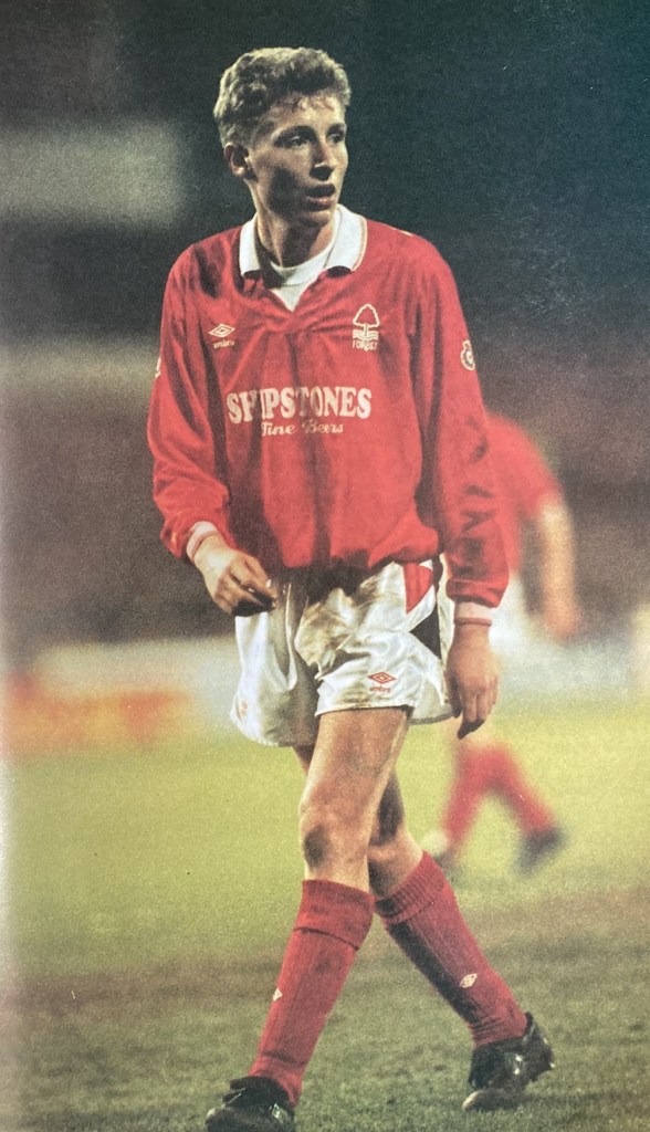 And so, after a short break, the 1990/91 season begins. Big Norm takes over the keeper’s jersey, but the rest of the team is more or less the same: Laws, Pearce, Chettle, & Walker in defence; Hodge, Parker, Crosby and one other in midfield; Clough and Jemson up front. No big signings over the summer. Ian Woan and Ray Charles will break into the side towards the end of the season; however, there is another player we’ve picked up who is about to make a massive impression. After a disappointing home draw against QPR, we travel to Anfield midweek. Stuart Pearce is out injured and there are starts for Phil Starbuck and Brett Williams. We lose 2-0, but all of the attention is on a young lad playing on the right side of midfield.